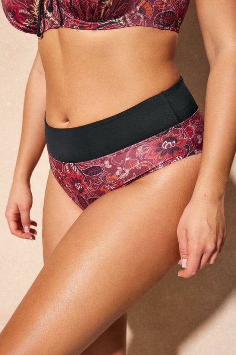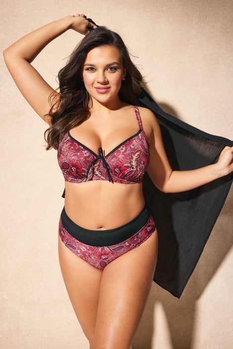Spodní díl plavek Kalbeliya ocení především dámy plných tvarů. Klasický střih vzadu jemně zahalí křivky, vyšší ohrnovací pas schová měkčí bříško. S orientálním potiskem.