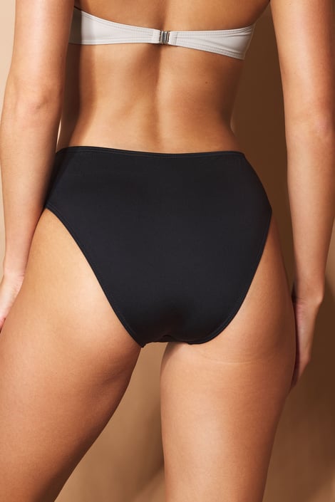 Spodní díl plavek Lota v jednoduchém černém designu, který snadno zkombinujete s jakýmkoliv plavkovým vrškem. V lehce vyšším střihu.