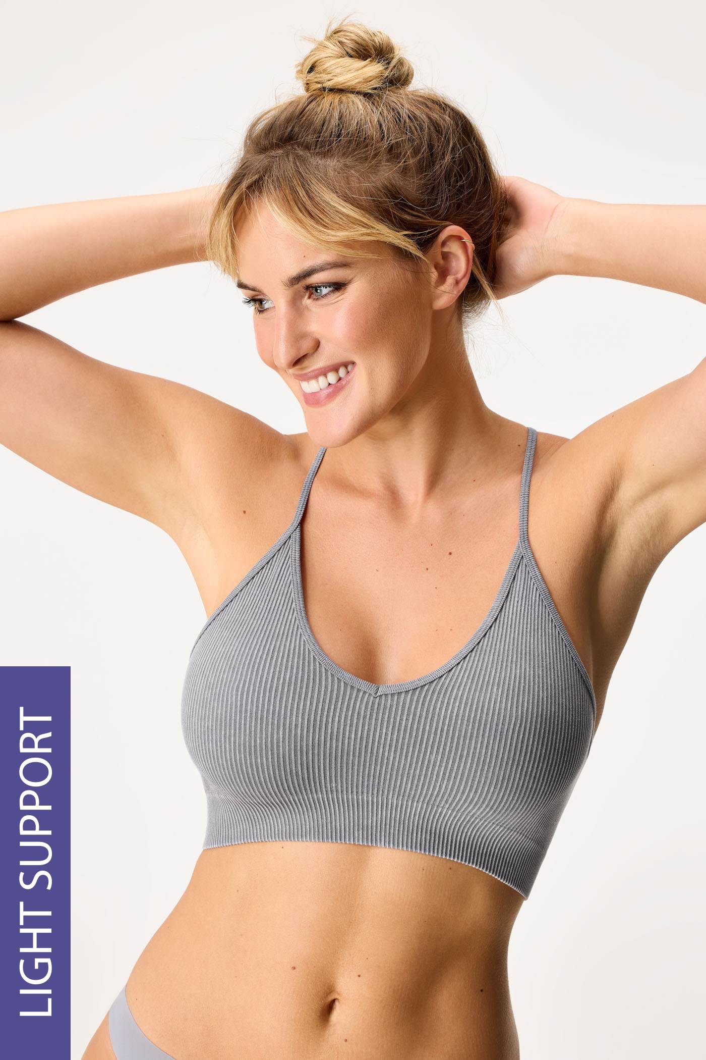 Sportovní podprsenka ONLY ONLLea z jemně žebrovaného materiálu. Nevyztužené košíčky bez kostic nabízí prsům absolutní volnost a pohodlí.