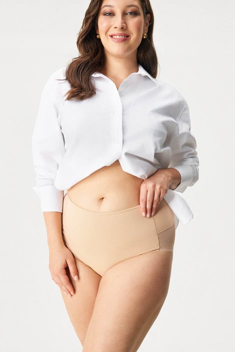 Stahovací kalhotky Serena zdokonalí vaše křivky při zachování pohodlí. Vysoký pas z pevného bavlněného úpletu dokonale stáhne bříško, zadeček opticky zaoblí nařasený jemňoučký tyl. Zesílený klín je s komfortní froté podšívkou.