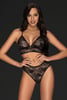 Krajkový komplet Obsessive Kokietta pro zpestření milostných hrátek. Lehoučká braletka přirozeně tvaruje poprsí, na zádech vyniká krajková vsadka. S vyššími kalhotkami.