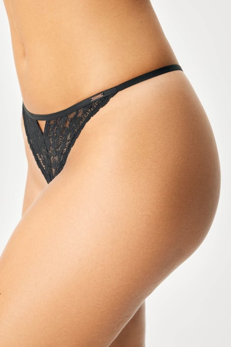 Tanga Anahi z romantické krajky vám opticky prodlouží nožky a zakulatí zadeček. V minimalistickém provedení s efektním průstřihem vpředu.