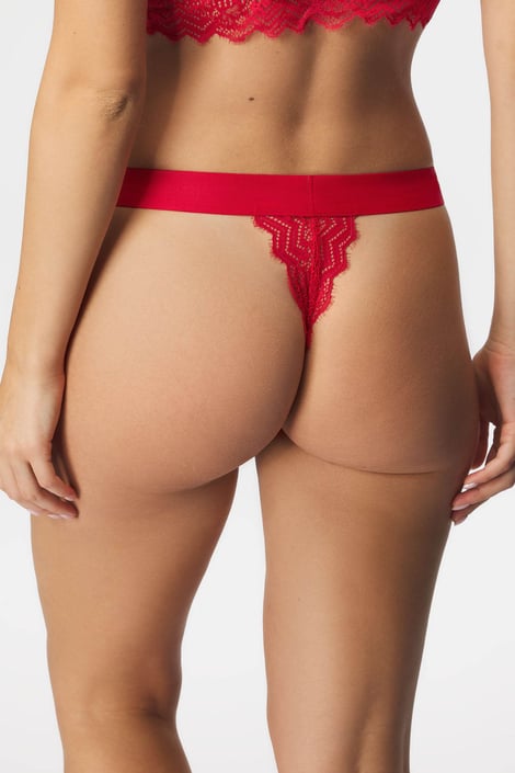 Krajková tanga HUGO Lace Red ve smyslné červené. V pase široká guma s decentním logem.
