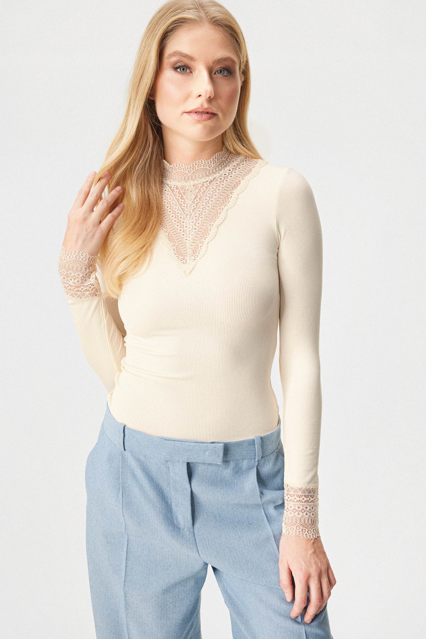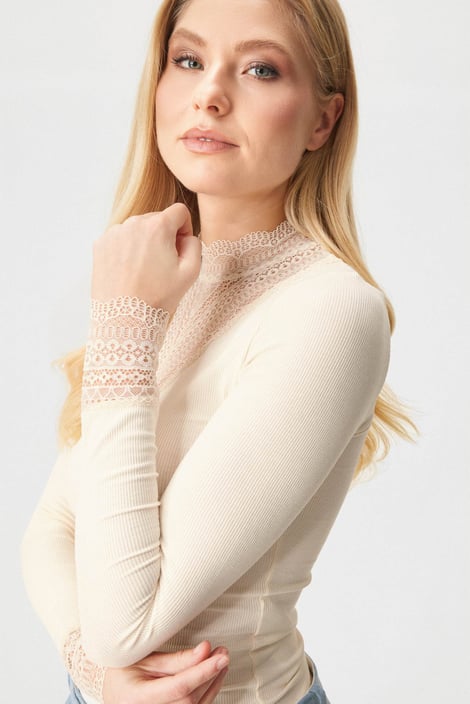 Tričko ONLY ONLTilde se stojáčkem se stane oblíbenou součástí vašich outfitů. Z měkkého žebrovaného úpletu v kombinaci s krajkou.