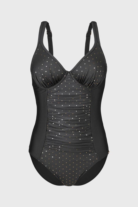 Jednodílné plavky Maia Glitter Black z dílny Astratexu dodají vašim křivkám potřebnou oporu. Košíčky z unikátní pěny jsou výjimečně měkké a vytvarují se přesně podle vašich ňader. Přední část je podšitá formující plavkovinou, která vyhladí křivky těla. Jemné nařasení v oblasti bříška opticky zalichotí.