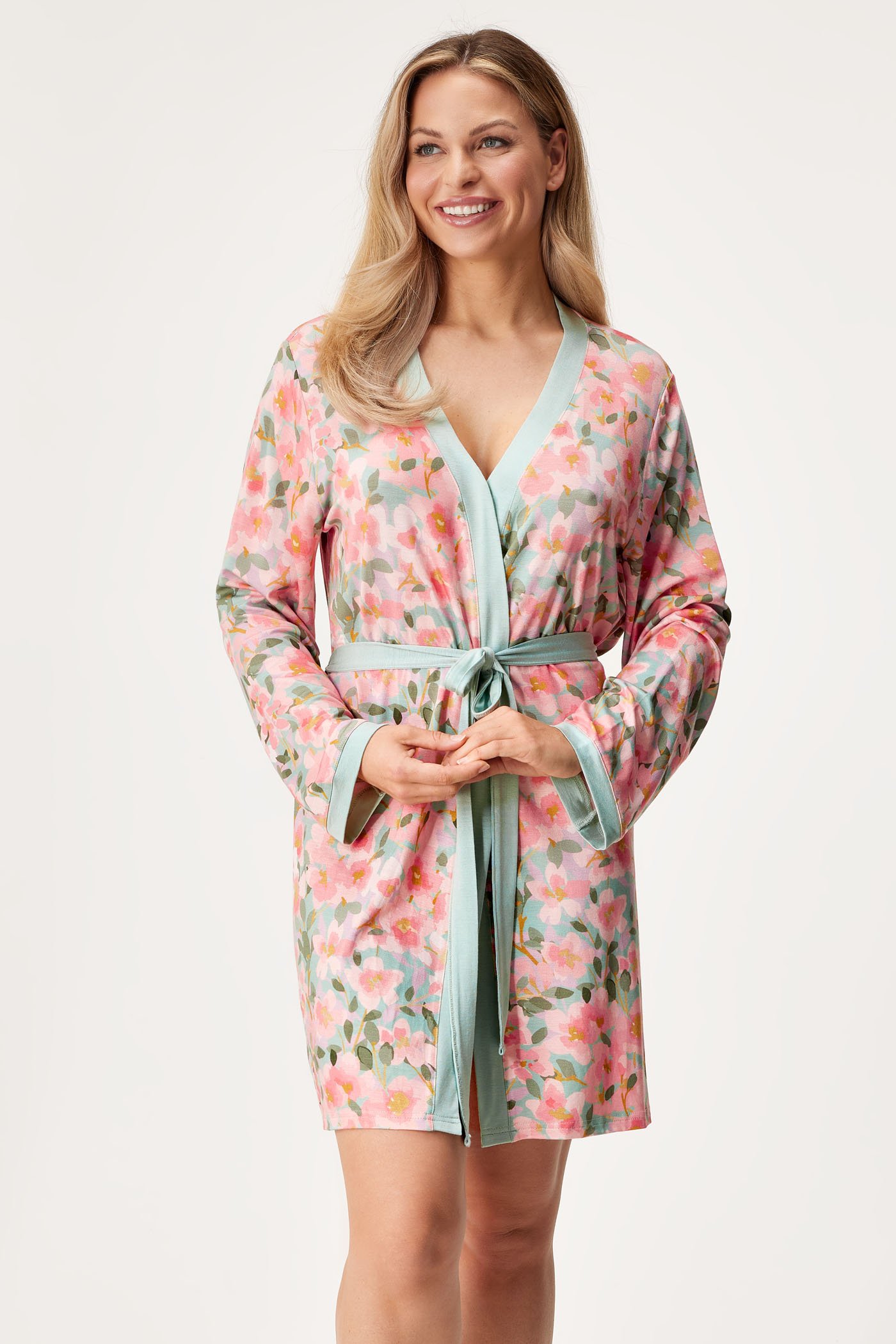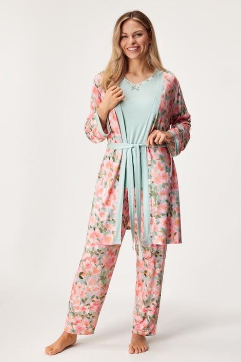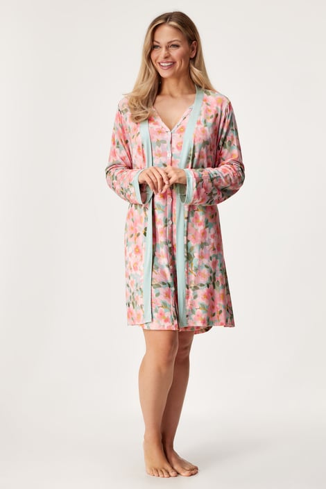Župan Follow your dream je ušitý z jemné viskózy, která je nesmírně příjemná na dotek. Úplet krásně splývá po těle. Elegantní květinový vzor mu dodává ještě větší nádech ženskosti.